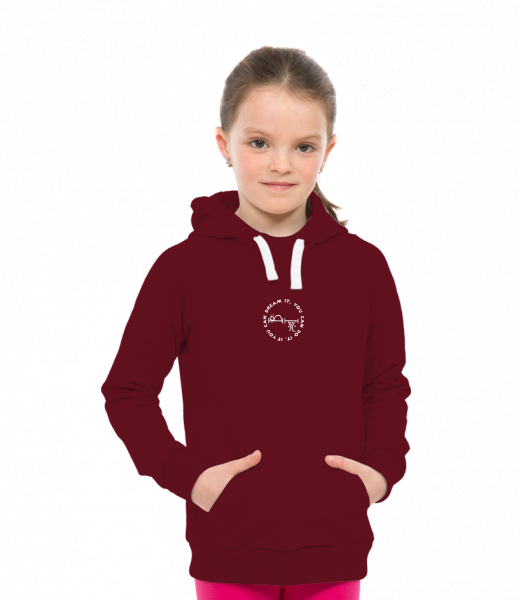Children's sweatshirt LIGHT with a hood and design UAX! Ski collection for kid with design 1133 IF YOU CAN DREAM IT in color DARK RED