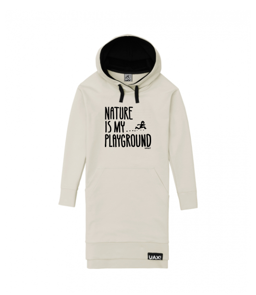 KIDS SWEATSHIRT DRESS LONG Ski collection for kid with design 1160 NATURE IS MY PLAYGROUND in color IVORY