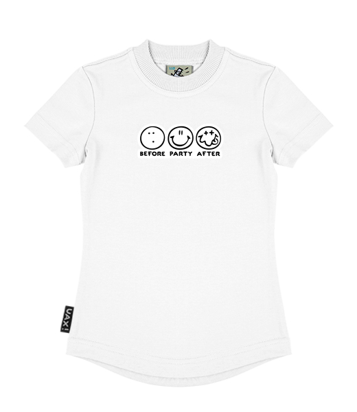 We make sustainable UAX clothing! - hand sewn in the Czech Republic uaxKids uaxSki collectionT-shirtsGIRL'S T-SHIRTSdesign 1120 - BEFORE PARTY AFTERWHITE