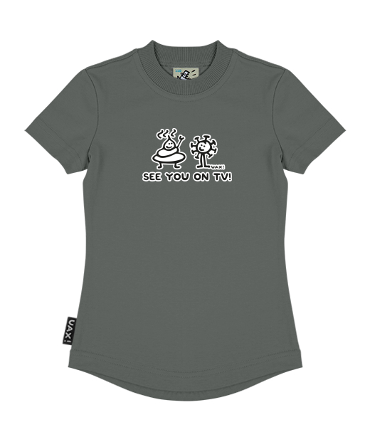 We make sustainable UAX clothing! - hand sewn in the Czech Republic uaxKids uaxSki collectionT-shirtsGIRL'S T-SHIRTSdesign 1306 - SEE YOU ON TVDARK GRAY