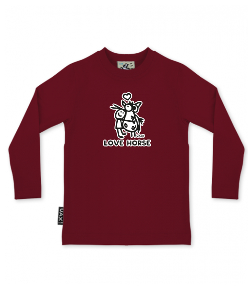We make sustainable UAX clothing! - hand sewn in the Czech Republic uaxKids uaxSki collectionT-shirtsT-SHIRTS SKRATCHILD+design 1219 - LOVE HORSEDARK RED