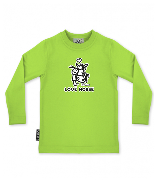 Baby boys T-SHIRTS SKRATCHILD+ UAX Ski collection for kid with design 1219 LOVE HORSE in color PARROT GREEN