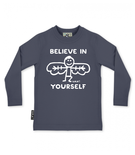 We make sustainable UAX clothing! - hand sewn in the Czech Republic uaxKids uaxSki collectionT-shirtsT-SHIRTS SKRATCHILD+design 1228 - BELIEVE IN YOURSELFGRAY INK