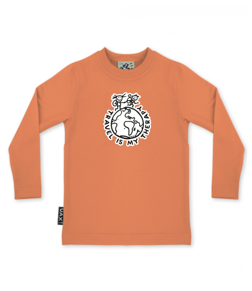 We make sustainable UAX clothing! - hand sewn in the Czech Republic uaxKids uaxSki collectionT-shirtsT-SHIRTS SKRATCHILD+design 1240 - TRAVEL IS MY THERAPYMANDARIAN ORANGE
