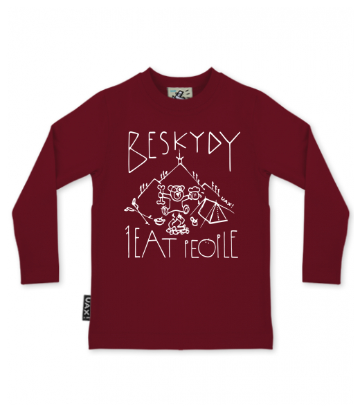 We make sustainable UAX clothing! - hand sewn in the Czech Republic uaxKids uaxSki collectionT-shirtsT-SHIRTS SKRATCHILD+design 1241 - I EAT PEOPLE BESKYDYDARK RED