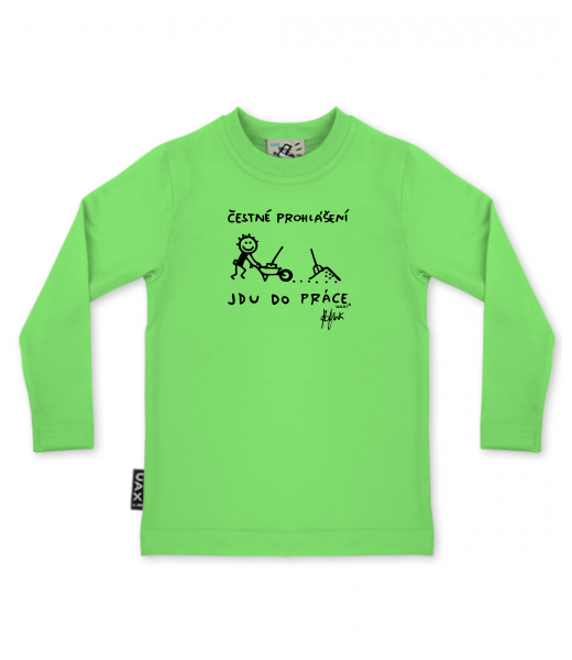 Baby boys T-SHIRTS SKRATCHILD+ UAX Ski collection for kid with design 1304 ČESTNÉ PROHLÁŠENÍ JDU DO PRÁCE in color APPLE