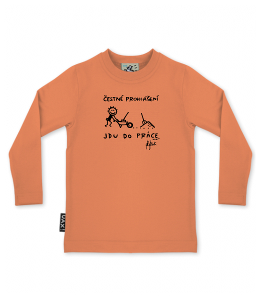 Baby boys T-SHIRTS SKRATCHILD+ UAX Ski collection for kid with design 1304 ČESTNÉ PROHLÁŠENÍ JDU DO PRÁCE in color MANDARIAN ORANGE