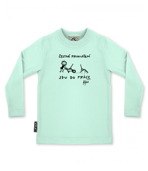 Baby boys T-SHIRTS SKRATCHILD+ UAX Ski collection for kid with design 1304 ČESTNÉ PROHLÁŠENÍ JDU DO PRÁCE in color MINT