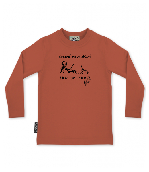 Baby boys T-SHIRTS SKRATCHILD+ UAX Ski collection for kid with design 1304 ČESTNÉ PROHLÁŠENÍ JDU DO PRÁCE in color TERRA