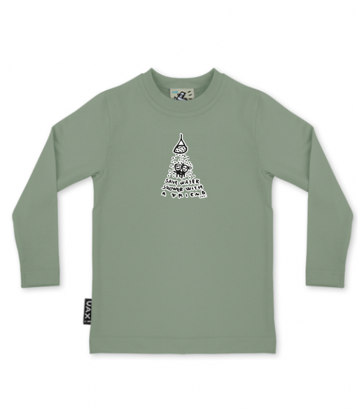 Baby boys T-SHIRTS SKRATCHILD+ UAX Ski collection for kid with design 519 SAVE WATER in color OLIVA