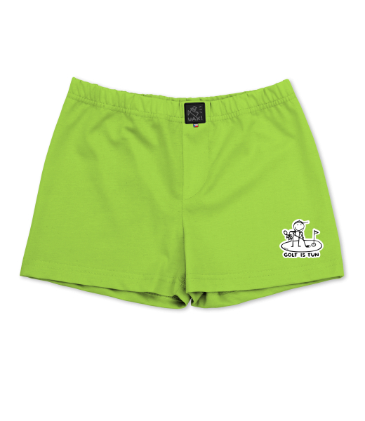 We make sustainable UAX clothing! - hand sewn in the Czech Republic uaxKids uaxSki collectionTrunksBOYS SHORTSdesign 1057 - GOLF IS FUNPARROT GREEN