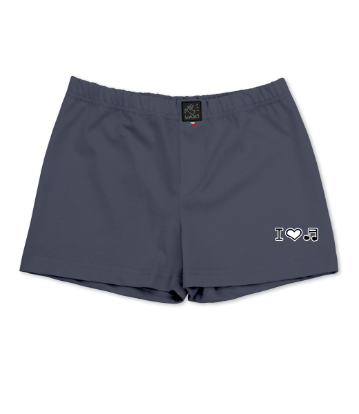 Boys shorts UAX Ski collection for kid with design 1067 I LOVE MUSIC in color GRAY INK