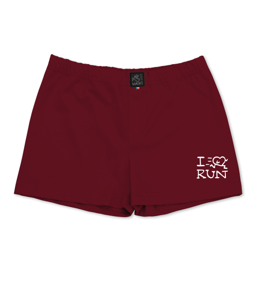 Boys shorts UAX Ski collection for kid with design 1088 I LOVE RUN in color DARK RED
