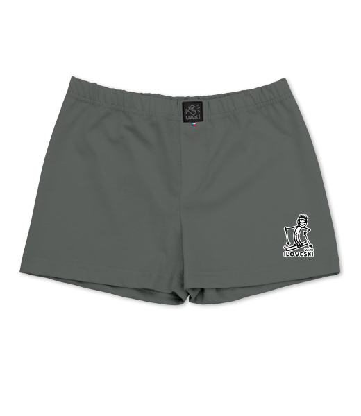 We make sustainable UAX clothing! - hand sewn in the Czech Republic uaxKids uaxSki collectionTrunksBOYS SHORTSdesign 1122 - I LOVE SKIDARK GRAY
