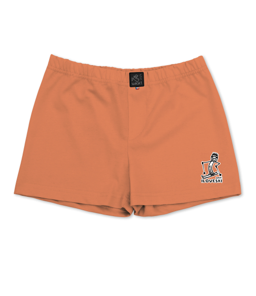 We make sustainable UAX clothing! - hand sewn in the Czech Republic uaxKids uaxSki collectionTrunksBOYS SHORTSdesign 1122 - I LOVE SKIMANDARIAN ORANGE