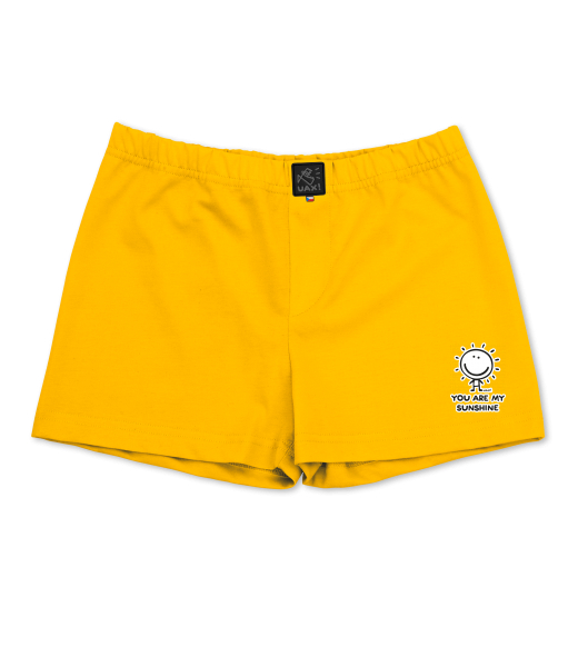 We make sustainable UAX clothing! - hand sewn in the Czech Republic uaxKids uaxSki collectionTrunksBOYS SHORTSdesign 1130 - YOU ARE MY SUNSHINEGOLDEN CREAM