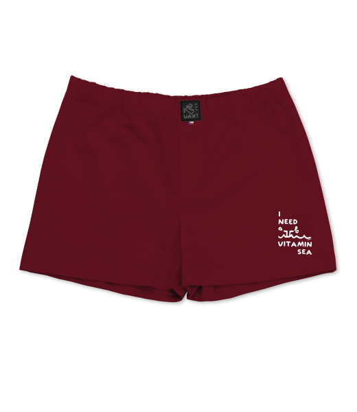Boys shorts UAX Ski collection for kid with design 1132 I NEED VITAMIN SEA in color DARK RED