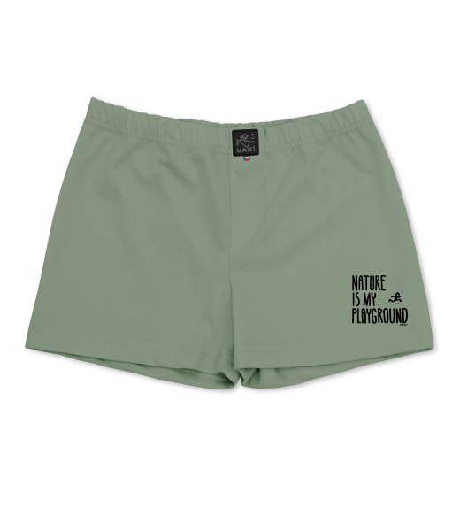 Boys shorts UAX Ski collection for kid with design 1160 NATURE IS MY PLAYGROUND in color OLIVA