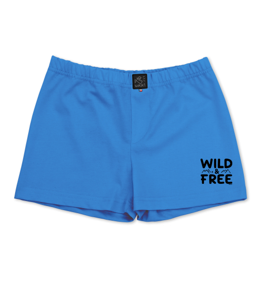 Boys shorts UAX Ski collection for kid with design 1161 WILD AND FREE in color CAPRI BLUE