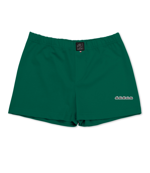 We make sustainable UAX clothing! - hand sewn in the Czech Republic uaxKids uaxSki collectionTrunksBOYS SHORTSdesign 1170 - CYCLISTSUNIVERSITY GREEN