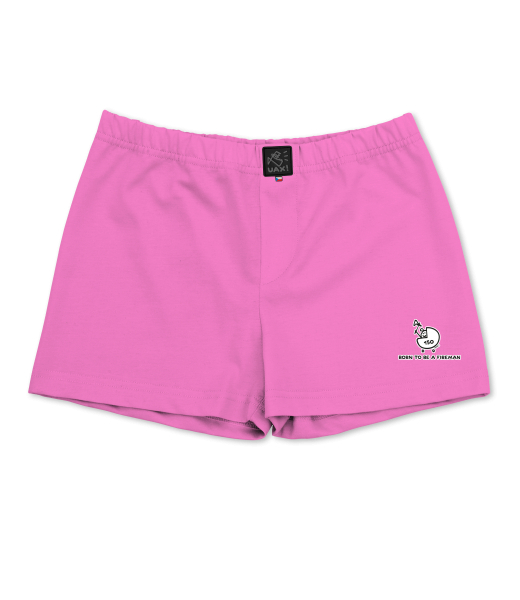 We make sustainable UAX clothing! - hand sewn in the Czech Republic uaxKids uaxSki collectionTrunksBOYS SHORTSdesign 1184 - BORN TO BE A FIREMANCLASSIC PINK