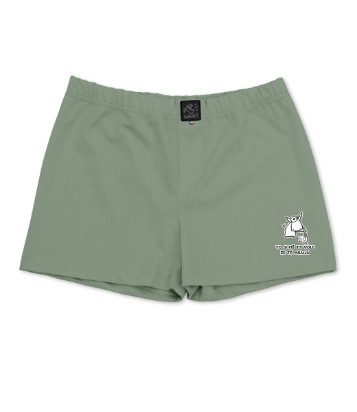 Boys shorts UAX Ski collection for kid with design 1192 TO SI PIŠ TY VOLE ŽE TĚ MILUJU in color OLIVA