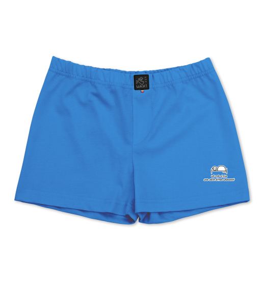 Boys shorts UAX Ski collection for kid with design 1200 UŽ TEĎ CÍTÍM JAK JSEM ZÍTRA UNAVENÝ in color CAPRI BLUE
