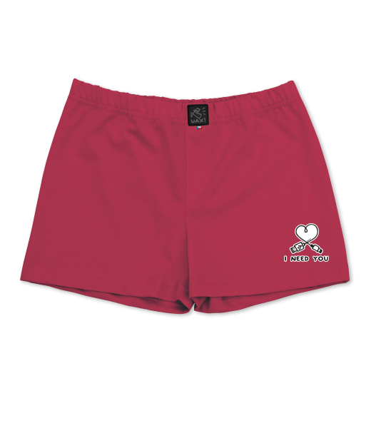 Boys shorts UAX Ski collection for kid with design 1206 I NEED YOU 2 in color CHILLY PEPPER RED