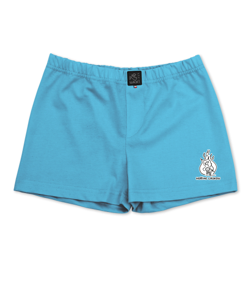 Boys shorts UAX Ski collection for kid with design 1208 HOŘÍME LÁSKOU in color BLUE ATOLL