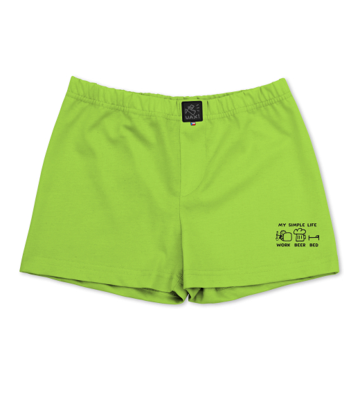 Boys shorts UAX Ski collection for kid with design 1211 MY SIMPLE LIFE WORK BEER BED in color PARROT GREEN