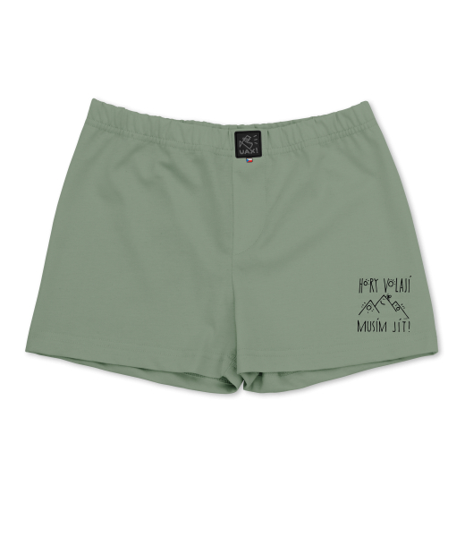 Boys shorts UAX Ski collection for kid with design 1233 HORY VOLAJÍ MUSÍM JÍT in color OLIVA