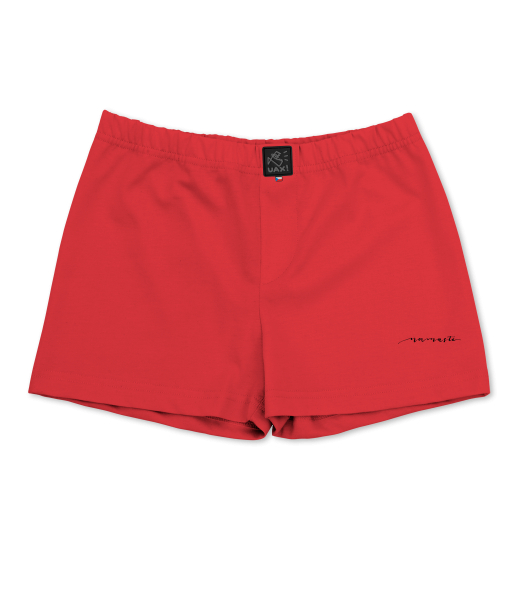 Boys shorts UAX Ski collection for kid with design 1234 NAMASTE in color RED