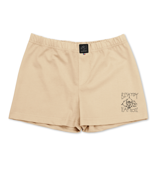 Boys shorts UAX Ski collection for kid with design 1241 I EAT PEOPLE BESKYDY in color CARAMEL