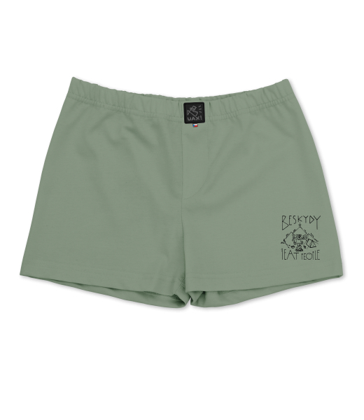 Boys shorts UAX Ski collection for kid with design 1241 I EAT PEOPLE BESKYDY in color OLIVA