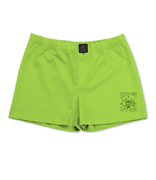 Boys shorts UAX Ski collection for kid with design 1241 I EAT PEOPLE BESKYDY in color PARROT GREEN
