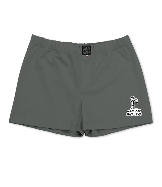 We make sustainable UAX clothing! - hand sewn in the Czech Republic uaxKids uaxSki collectionTrunksBOYS SHORTSdesign 1248 - MÁM OBĚ RUCE LEVÉDARK GRAY