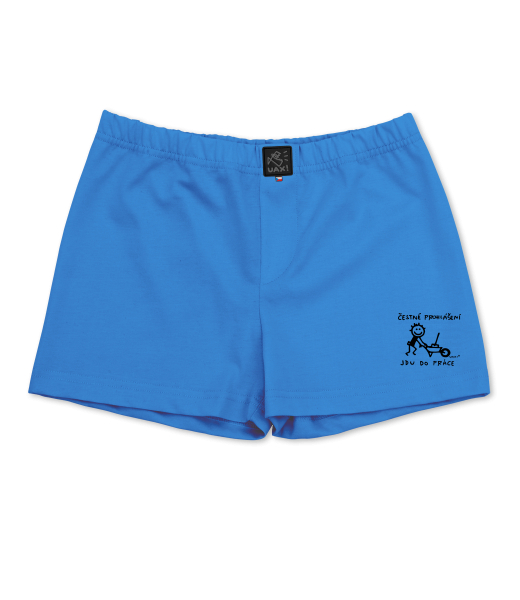 Boys shorts UAX Ski collection for kid with design 1305 ČESTNÉ PROHLÁŠENÍ JDU DO PRÁCE 2 in color CAPRI BLUE