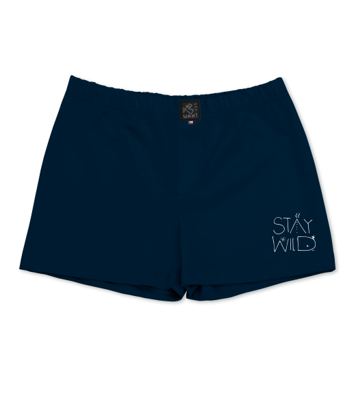 We make sustainable UAX clothing! - hand sewn in the Czech Republic uaxKids uaxSki collectionTrunksBOYS SHORTSdesign 1337 - STAY WILDDARK NAVY