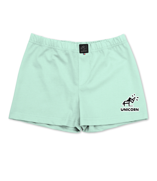 We make sustainable UAX clothing! - hand sewn in the Czech Republic uaxKids uaxSki collectionTrunksBOYS SHORTSdesign 1376 - UNICORNMINT