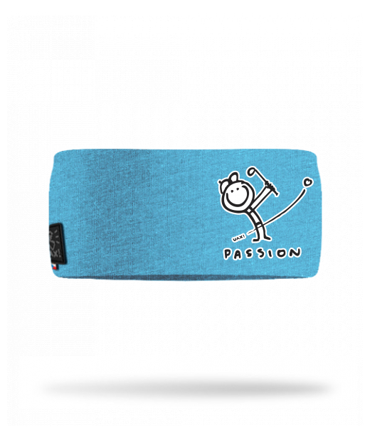 Cotton sports headband for man with design 1052 PASSION in color BLUE ATOLL