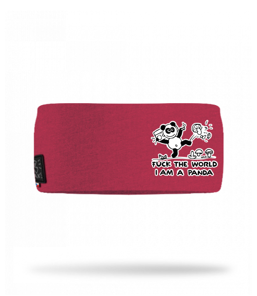 Cotton sports headband for man with design 1060 I AM A PANDA in color CHILLY PEPPER RED