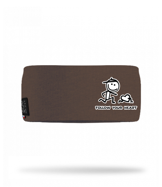 Cotton sports headband for man with design 1063 FOLOW YOUR HEART in color CHESTNUT