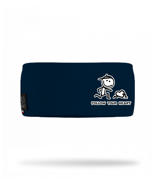 Cotton sports headband for man with design 1063 FOLOW YOUR HEART in color DARK NAVY