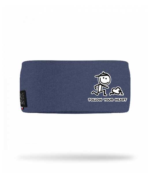 Cotton sports headband for man with design 1063 FOLOW YOUR HEART in color JEANS