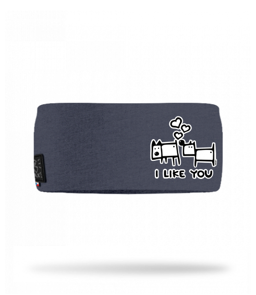 Cotton sports headband for man with design 1066 I LIKE YOU in color GRAY INK