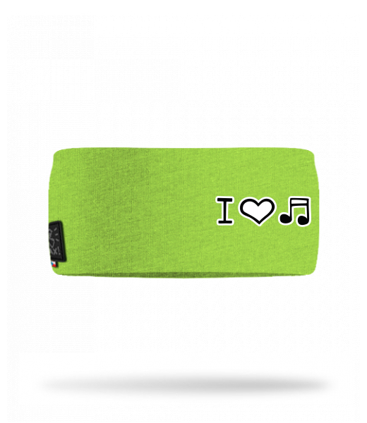 We make sustainable UAX clothing! - hand sewn in the Czech Republic uaxMen uaxAll productsHats and HeadbandsCOTTON SPORTS HEADBANDdesign 1067 - I LOVE MUSICPARROT GREEN
