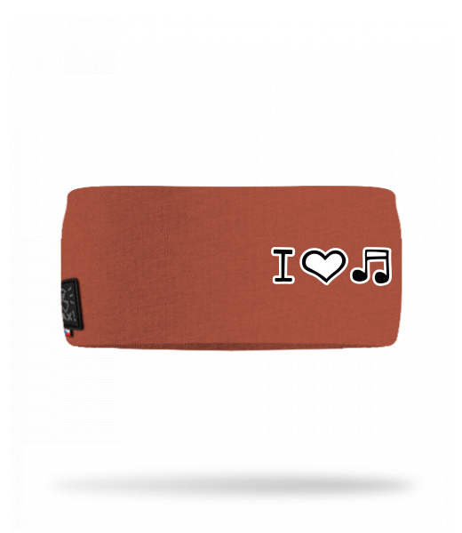 Cotton sports headband for man with design 1067 I LOVE MUSIC in color TERRA
