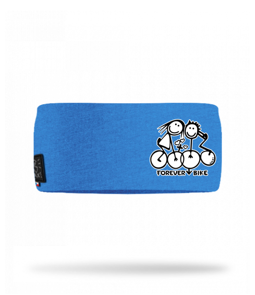 Cotton sports headband for man with design 1068 FOREVER BIKE in color CAPRI BLUE