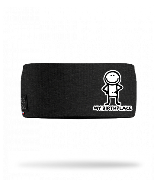 Cotton sports headband for man with design 1069 MY BIRTHPLACE in color BLACK