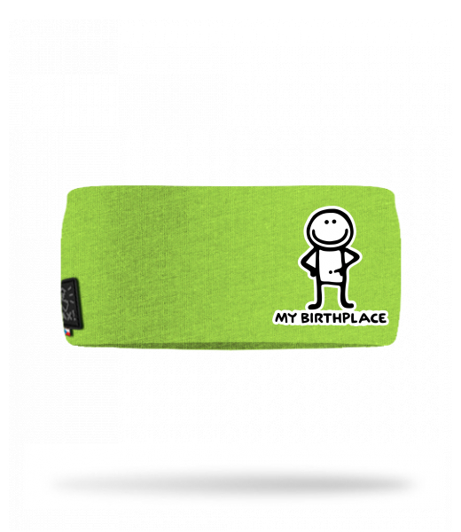Cotton sports headband for man with design 1069 MY BIRTHPLACE in color PARROT GREEN
